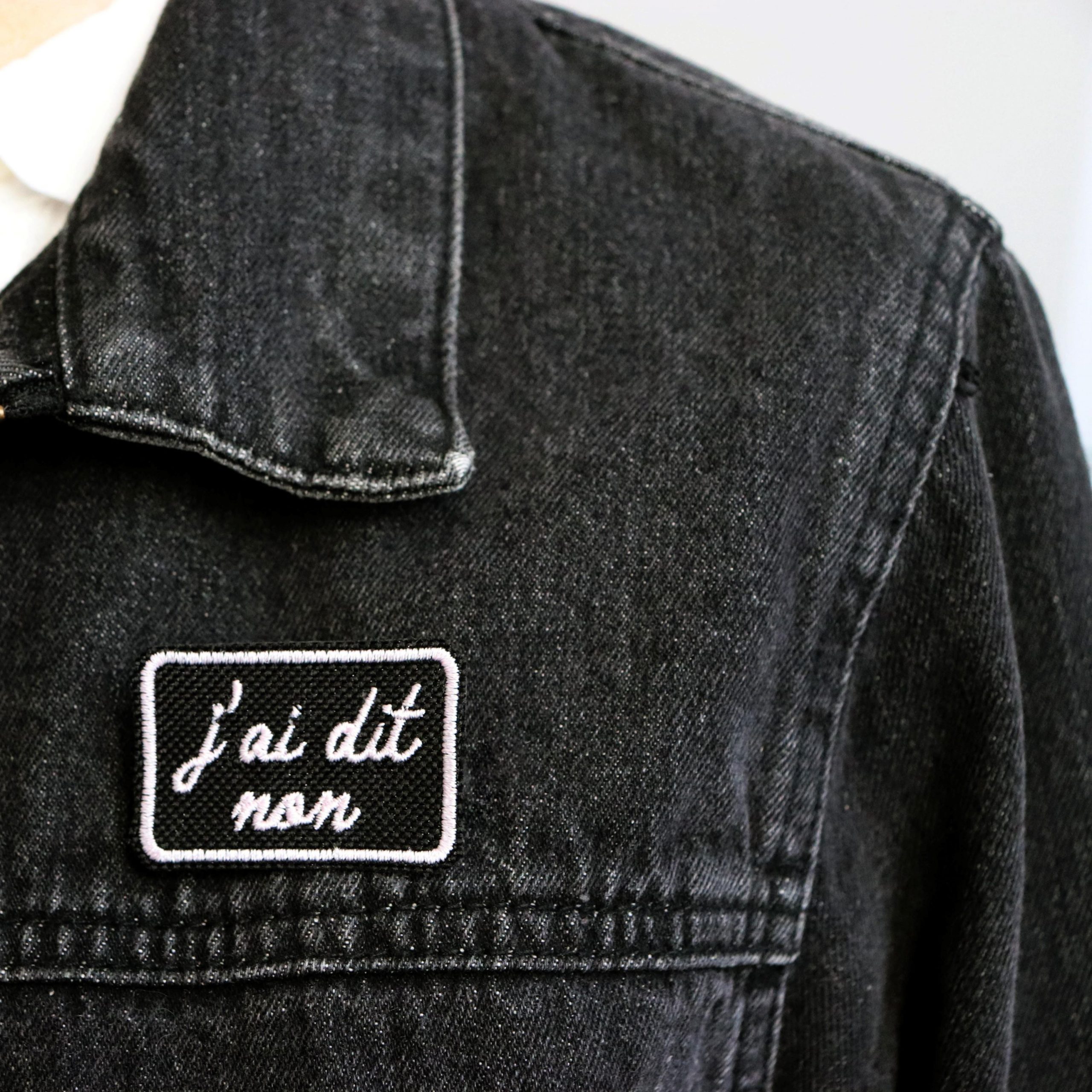 broche brodée à message clair « j’ai dit non »